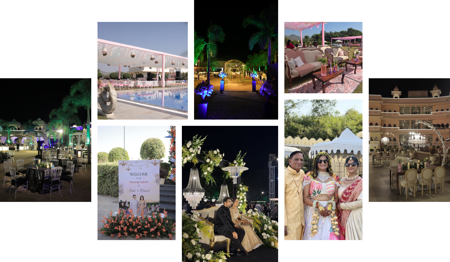 Whether it’s a regal palace wedding in Udaipur, an intimate lakeside affair, or a vibrant mehendi drenched in marigold hues, our team tailors every event to match your unique love story. From concept to execution, we bring creativity, precision, and warmth into every detail.